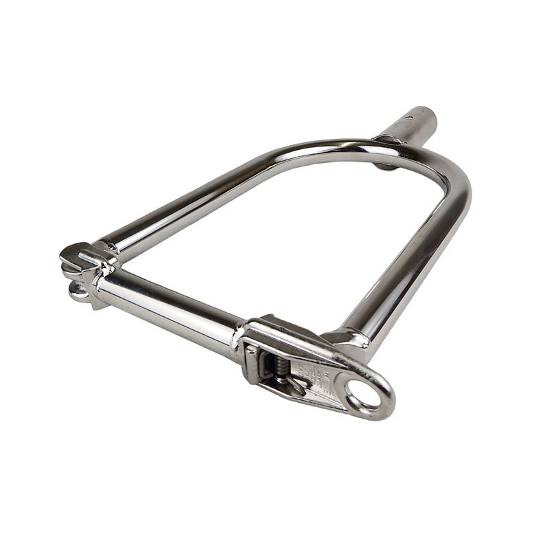 Made from marine grade stainless steel, it is extremely resistant to rust and the marine environment. The link arm is secured by a stainless spring ensuring a solid contact when in use. A 28mm pole of any type can be attached by use of the socket at the bottom of the product.